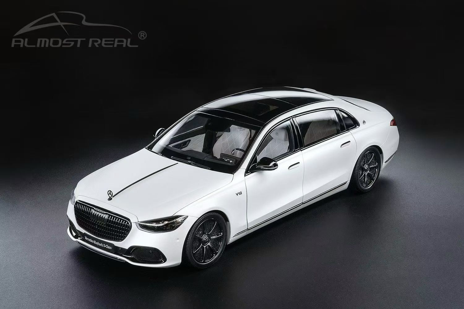 Today’s Launch from Almost Real: "Mercedes-Maybach S-Class Night Series 2023 Model – Matte Pearl White 1:18 Scale Die-Cast Full-Opening Car Model"