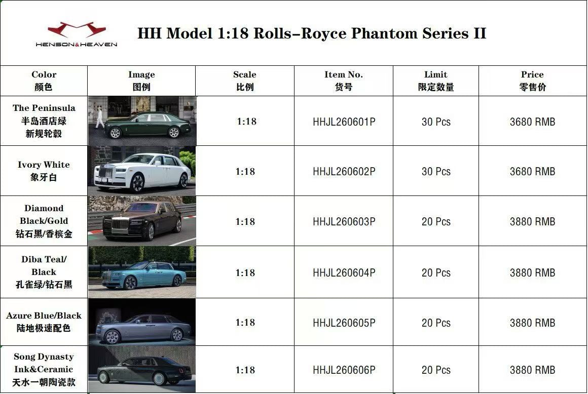 HH Model 1/18 Rolls-Royce Phantom Series II new model is now available for pre-order!