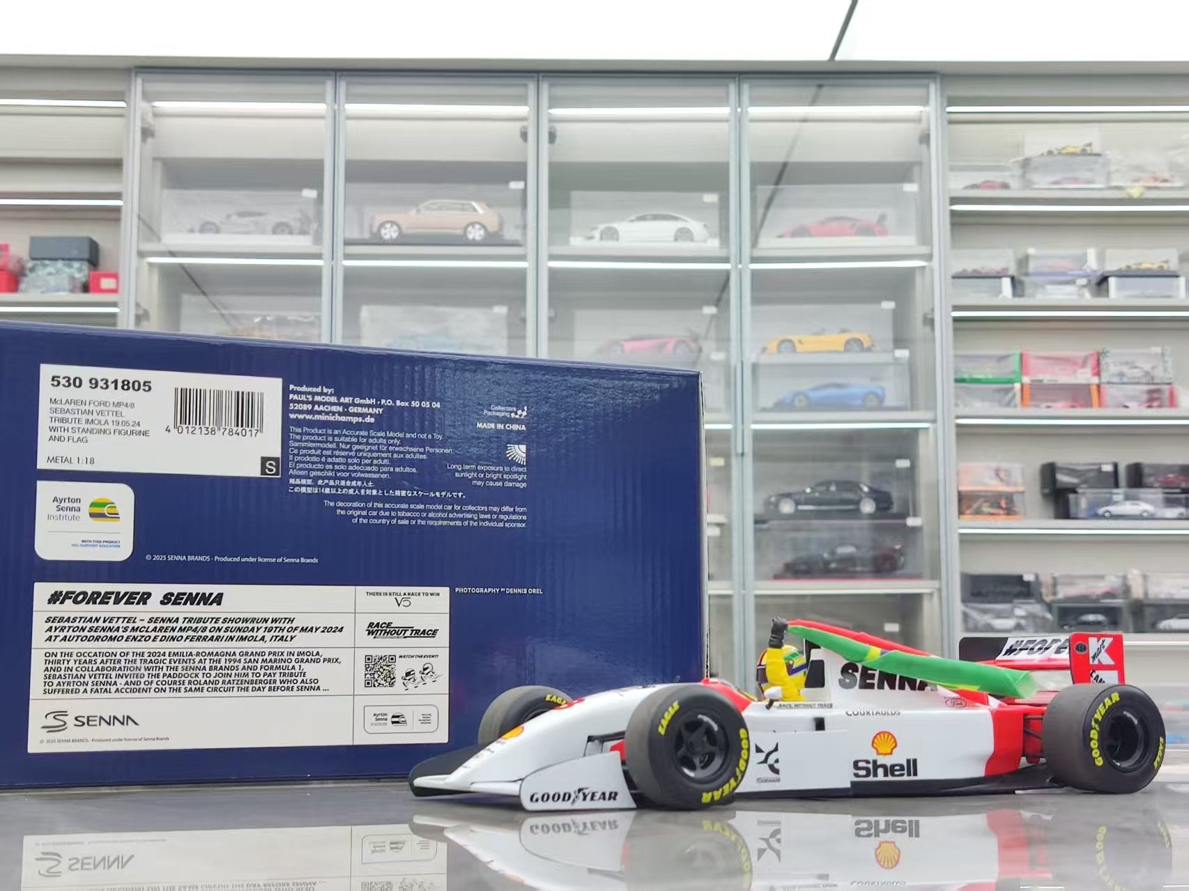 MINICHAMPS 1/18 McLaren FORD MP4/8 - SEBASTIAN VETTEL - Includes figure and flag, red and white livery 530931805