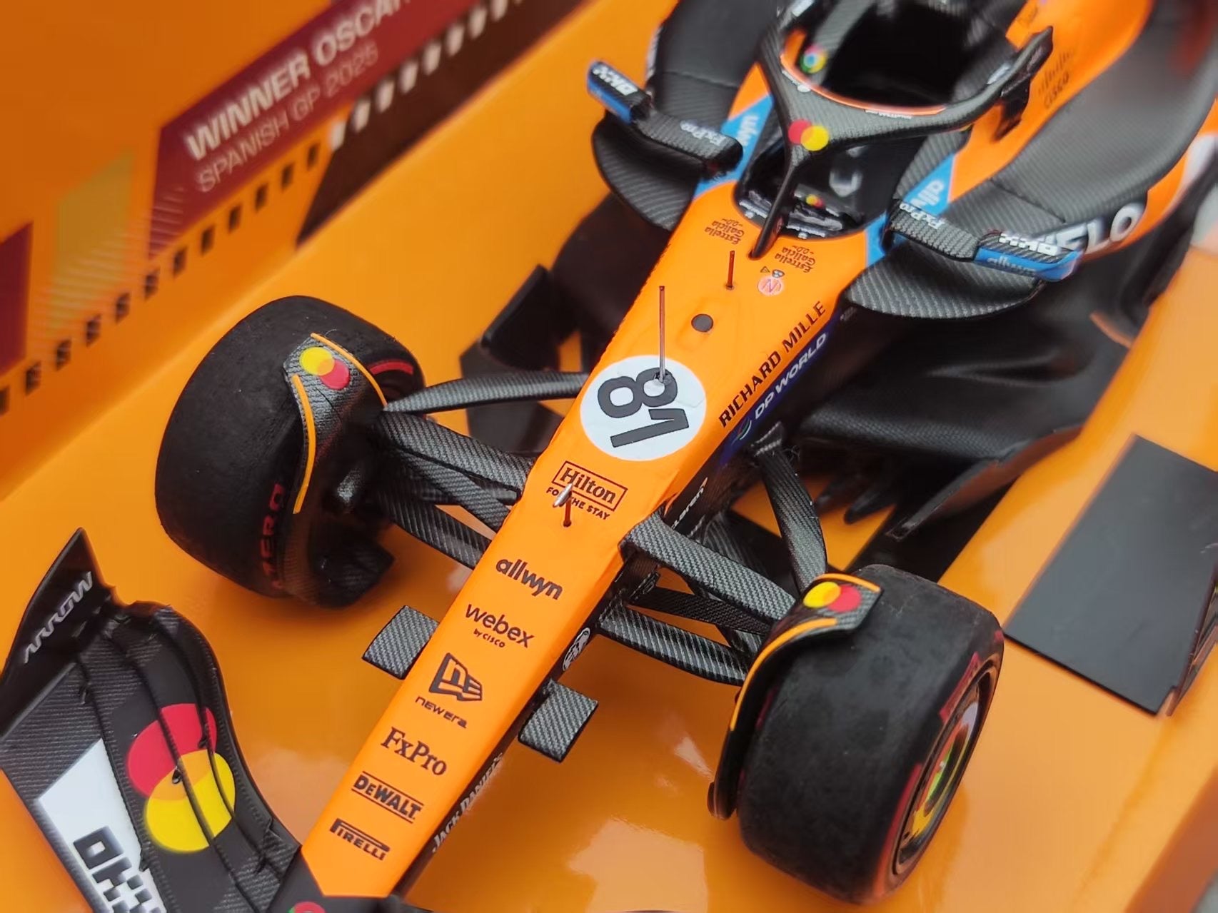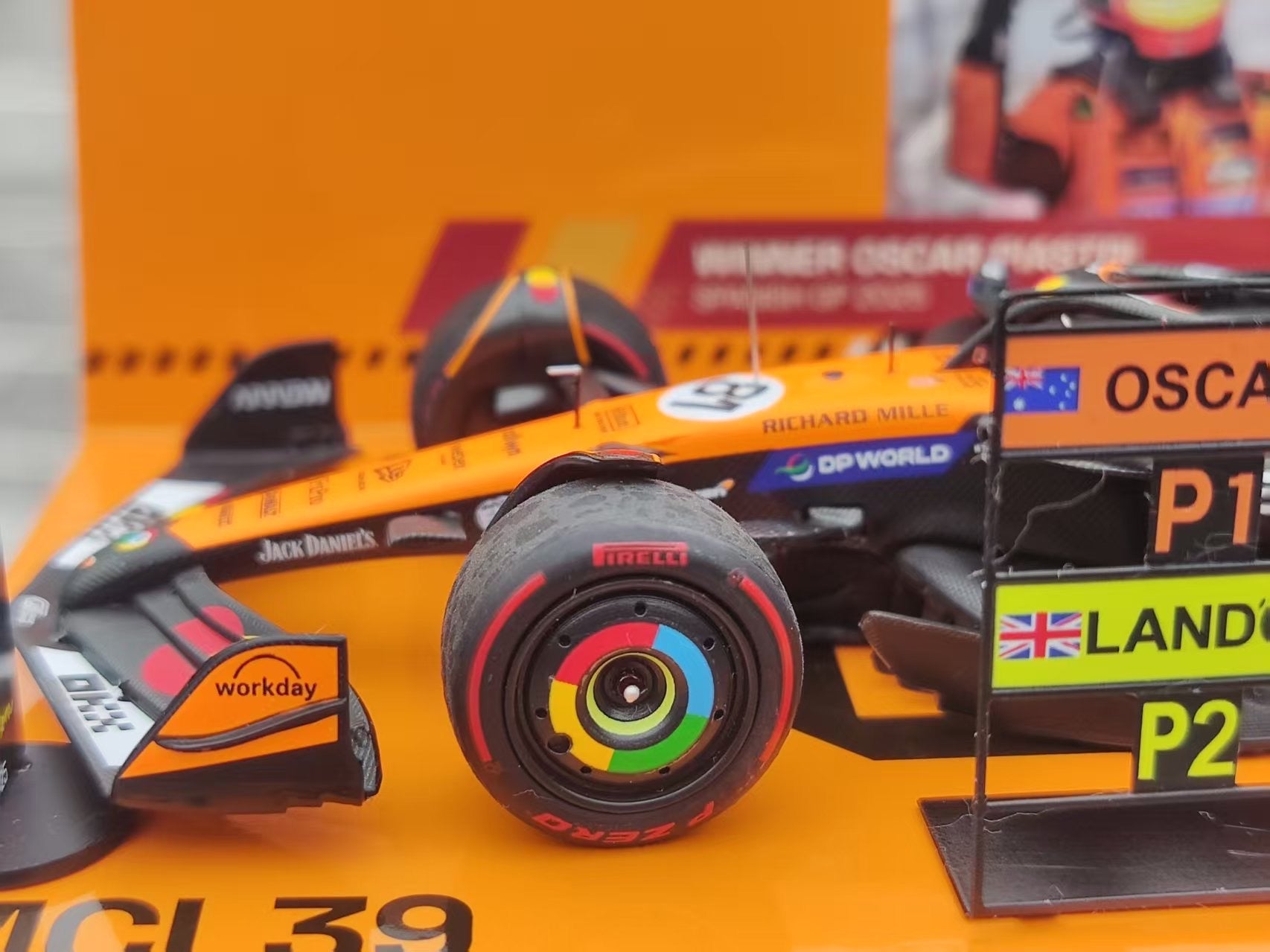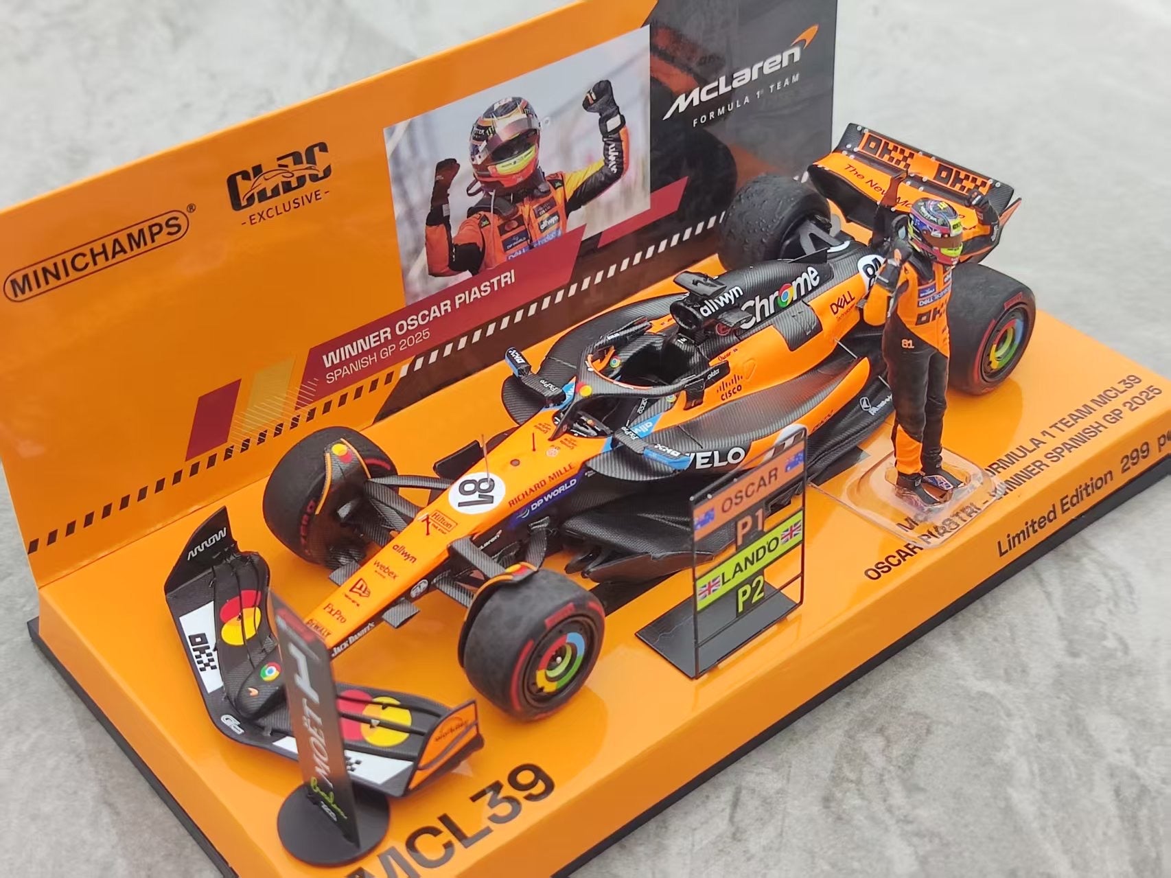 MINICHAMPS 1/43 McLaren F1 Team MCL39 - Winner Spanish GP 2025 with driver figure and scoring board, Orange 533255181