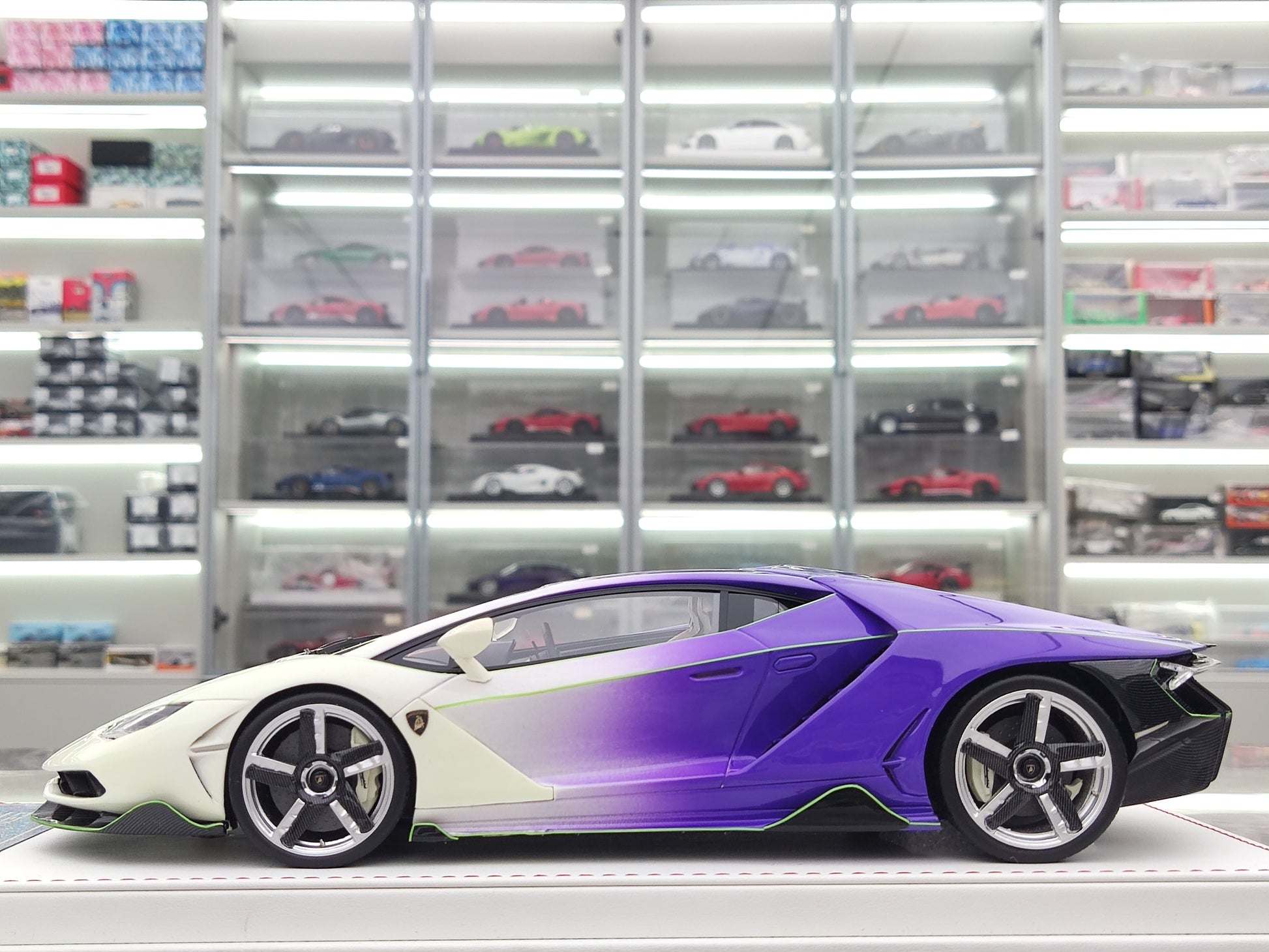 TE 1/18 Lamborghini Centenario Gradient Purple/Glow-in-the-Dark Green Resin Car Model JS-TE002
