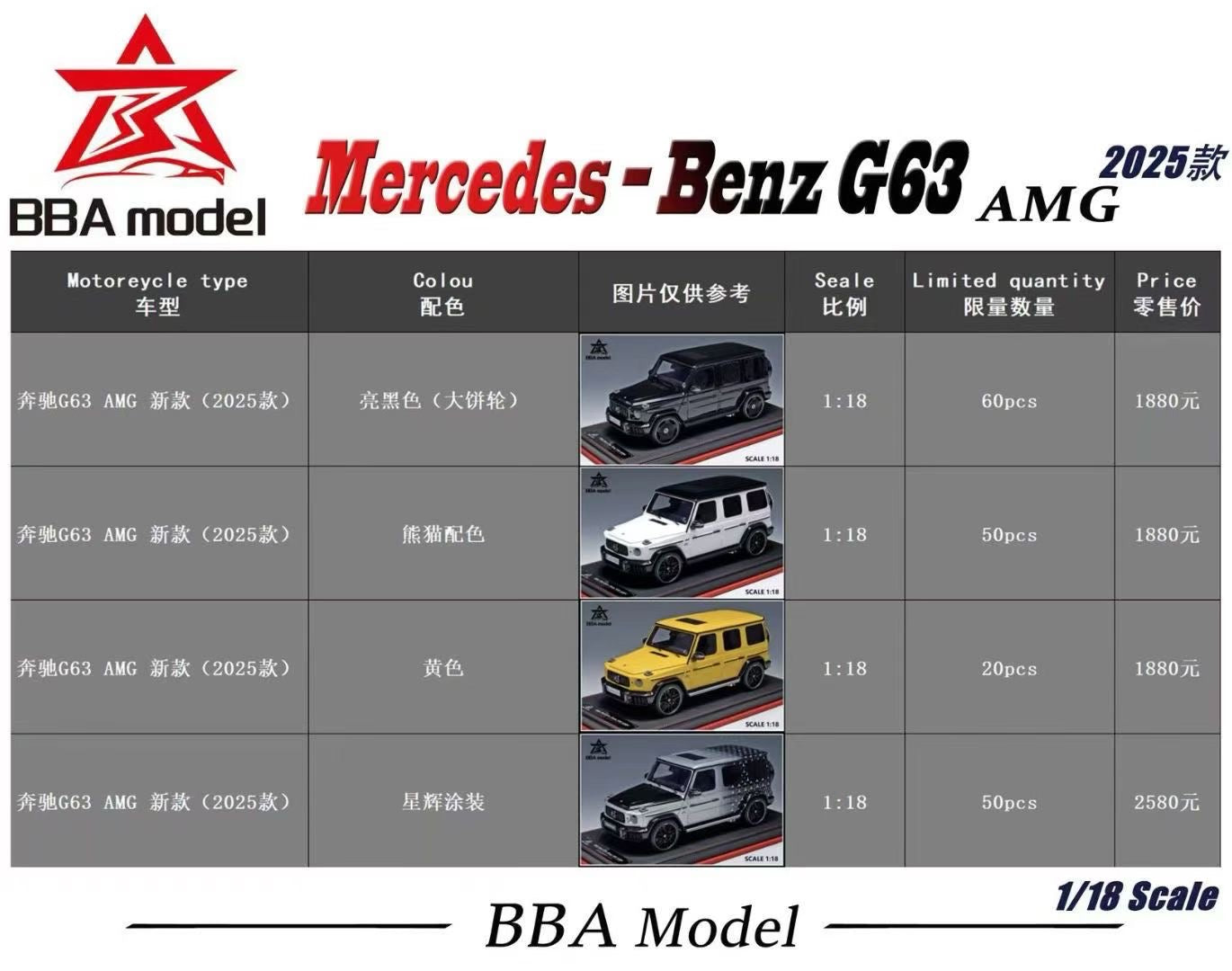 BBA model 1/18 2025 Mercedes-Benz-G63 AMG resin car model