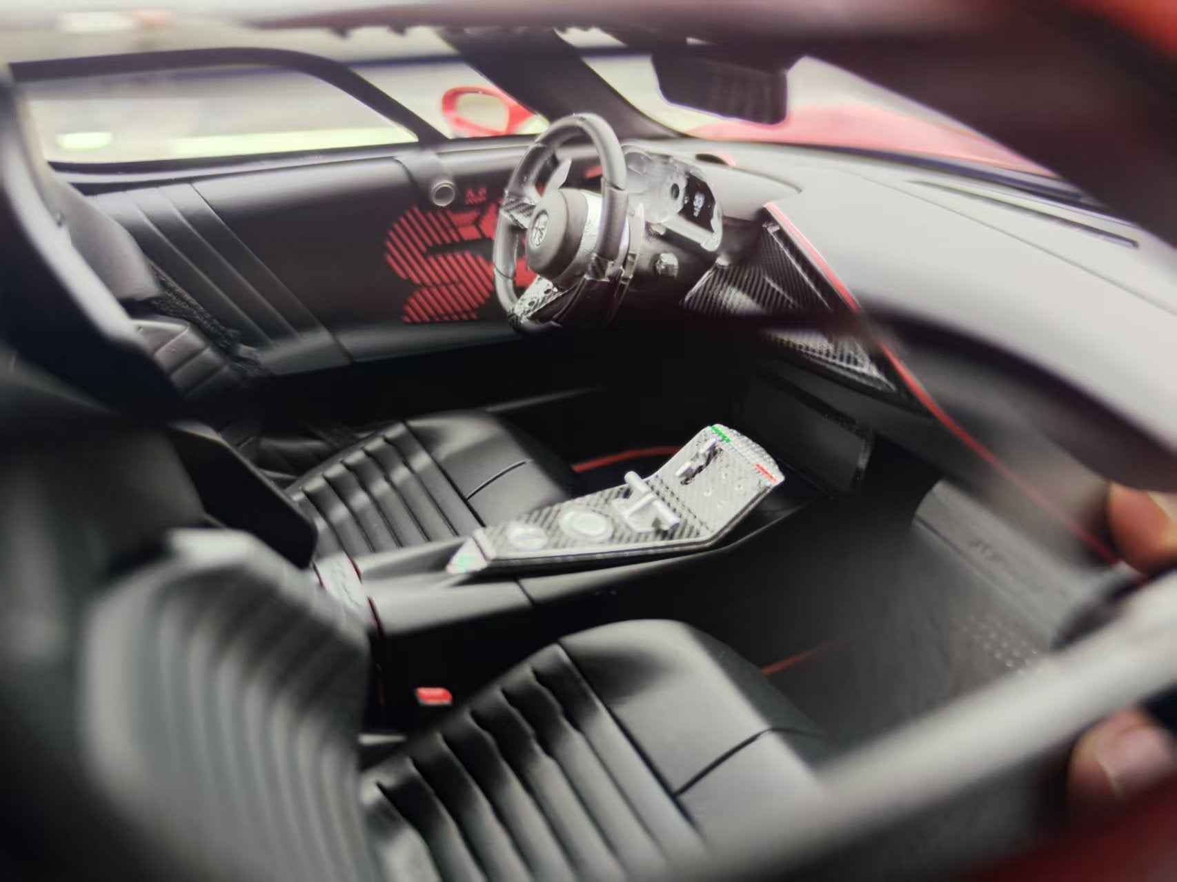 Introducing the BBR 1/18 Alfa Romeo 33 Stradale car model. Crafted with a leather base and striking red and black wheels, this model exudes luxury and style. Perfect for collectors and enthusiasts, this model is a stunning addition to any display. Expertly crafted, this model boasts fine detailing and impeccable craftsmanship.