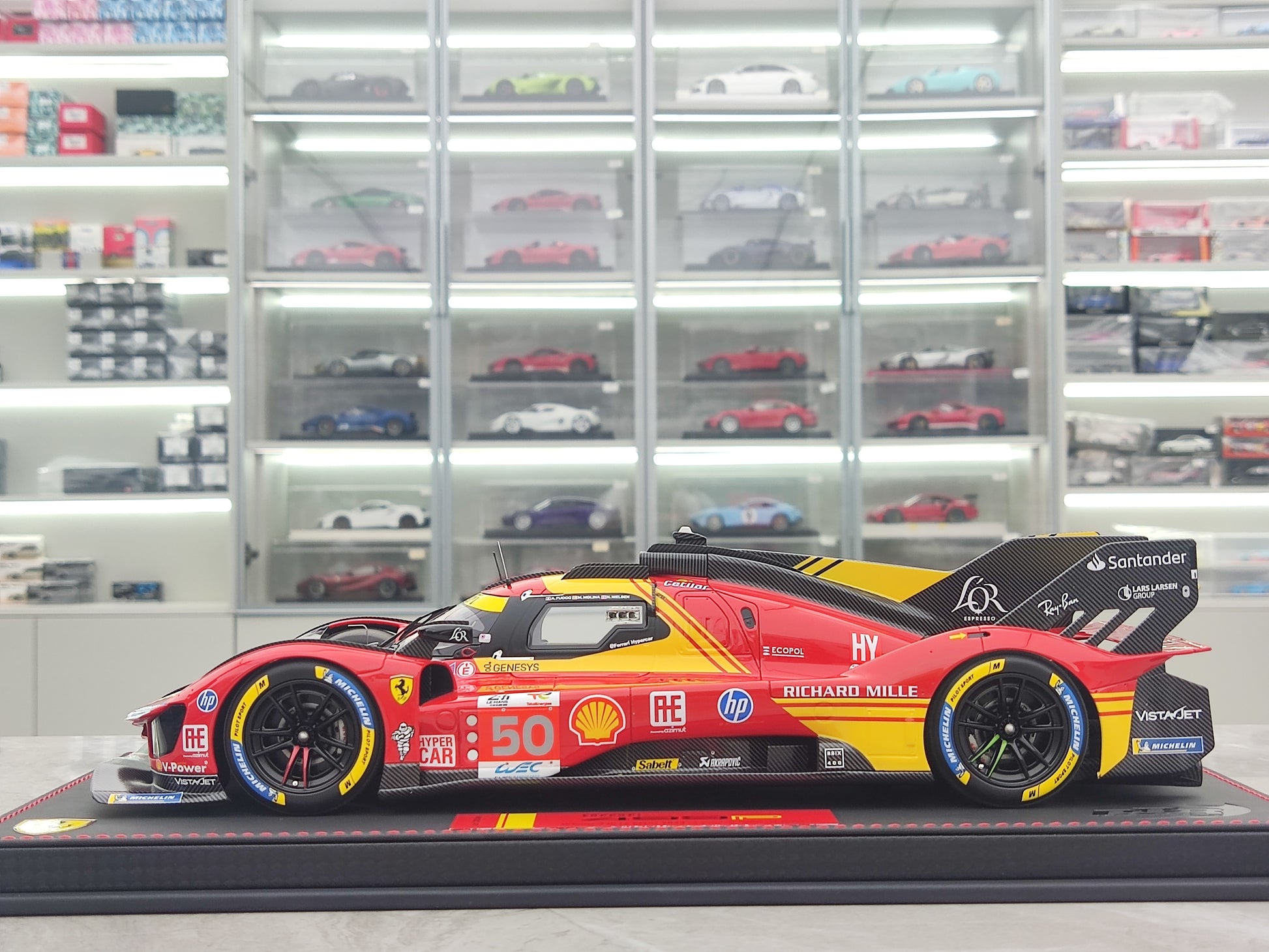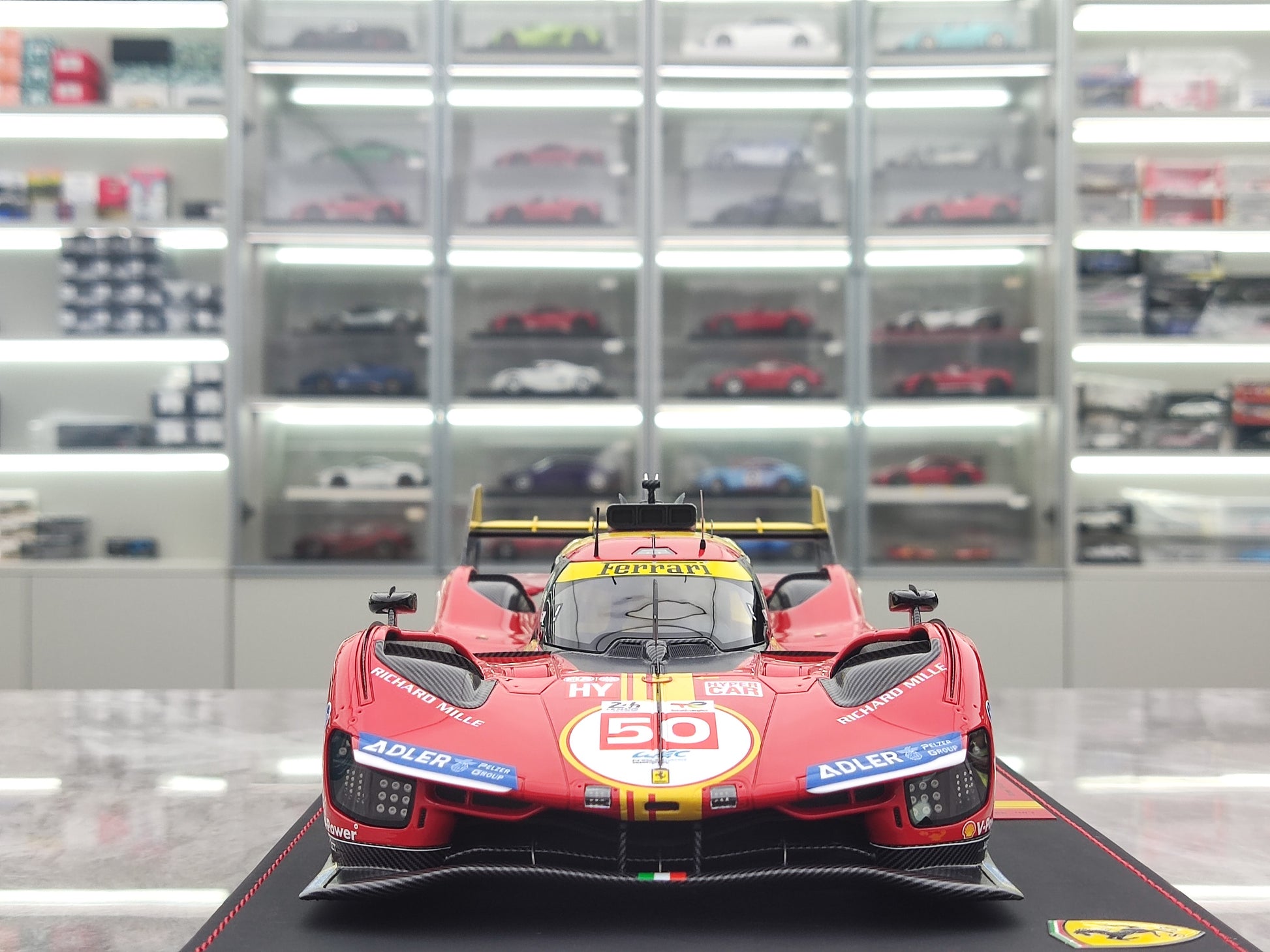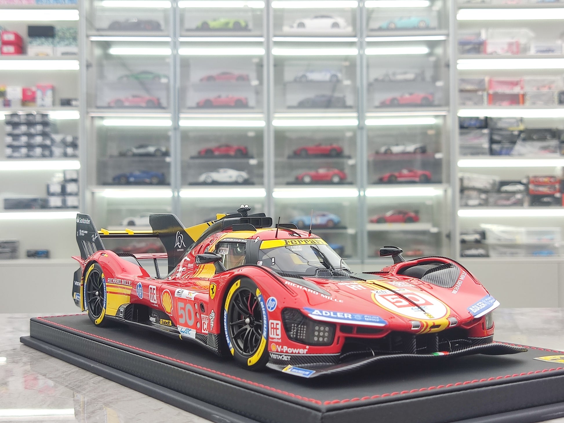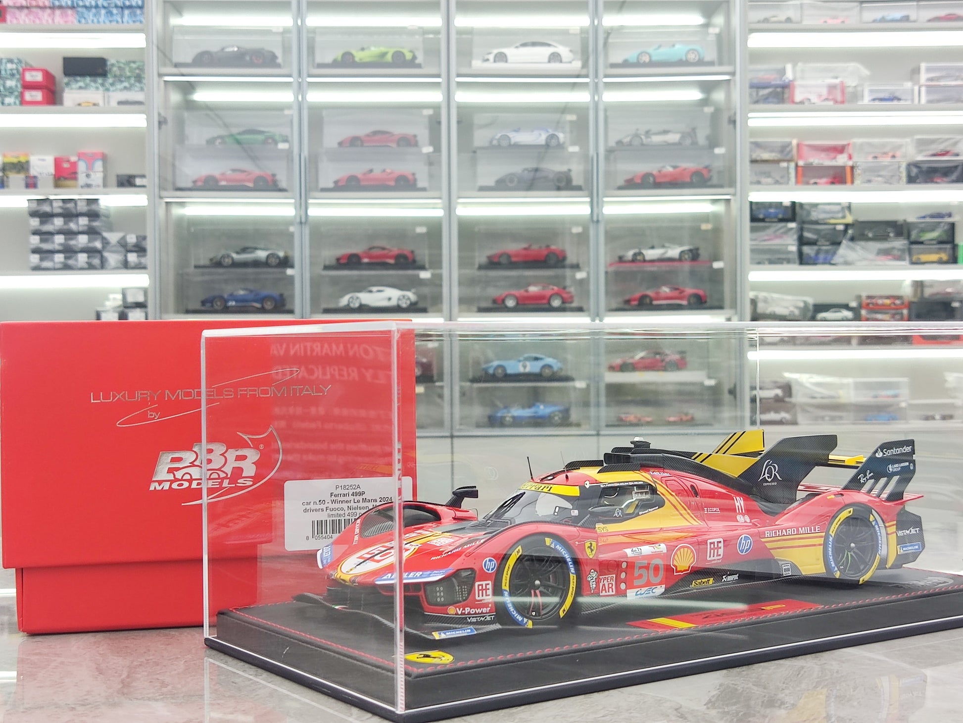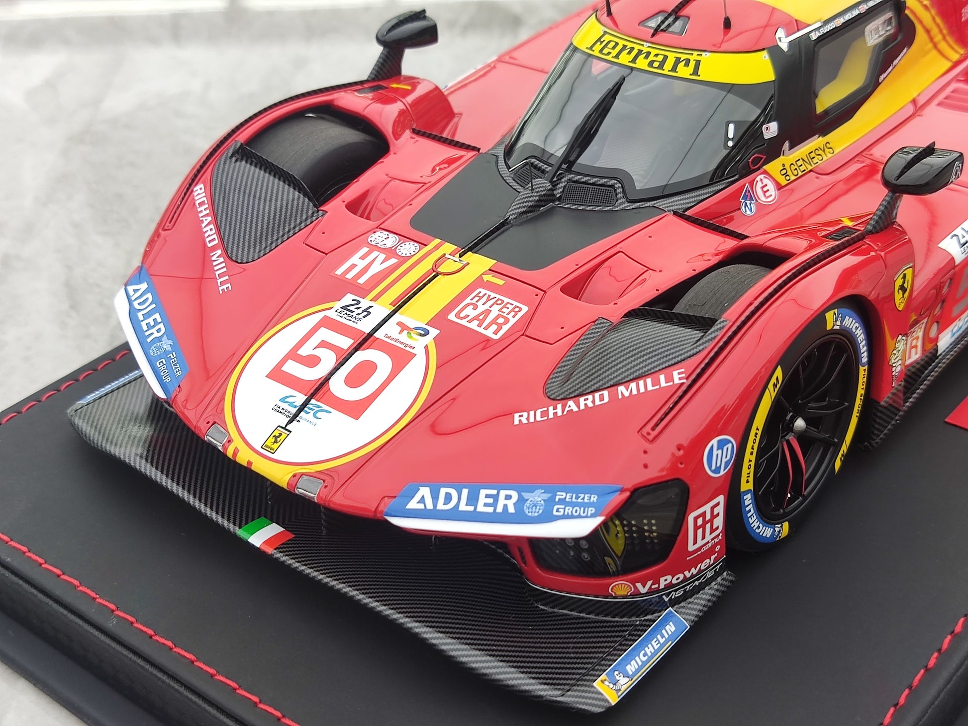 BBR 1/18 Ferrari 499P Car N.50 Winner Le Mans - Leather Base, Red-Yellow Paint Scheme, Limited Edition Car Model P18252A