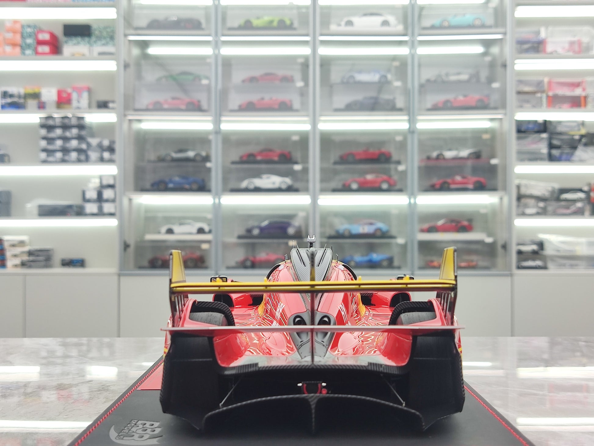 Experience the excitement of Le Mans with the BBR 1/18 Ferrari 499P Car. This limited edition car model features a red-yellow paint scheme and a leather base for a sleek and stylish look. With intricate details and a realistic design, this car model will make a perfect addition to any collection.