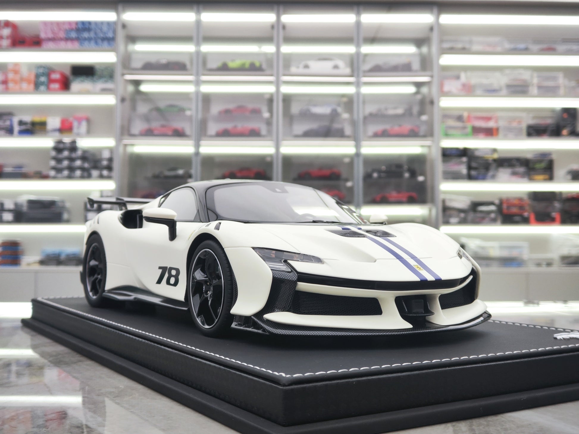 This 1/18 Ferrari SF90 XX Stradale model is a beautifully crafted and detailed collectible for car enthusiasts. Made with simulated material, it features a stunning white finish and is perfect for displaying in a showcase. Add it to your collection for a touch of elegance and sophistication.