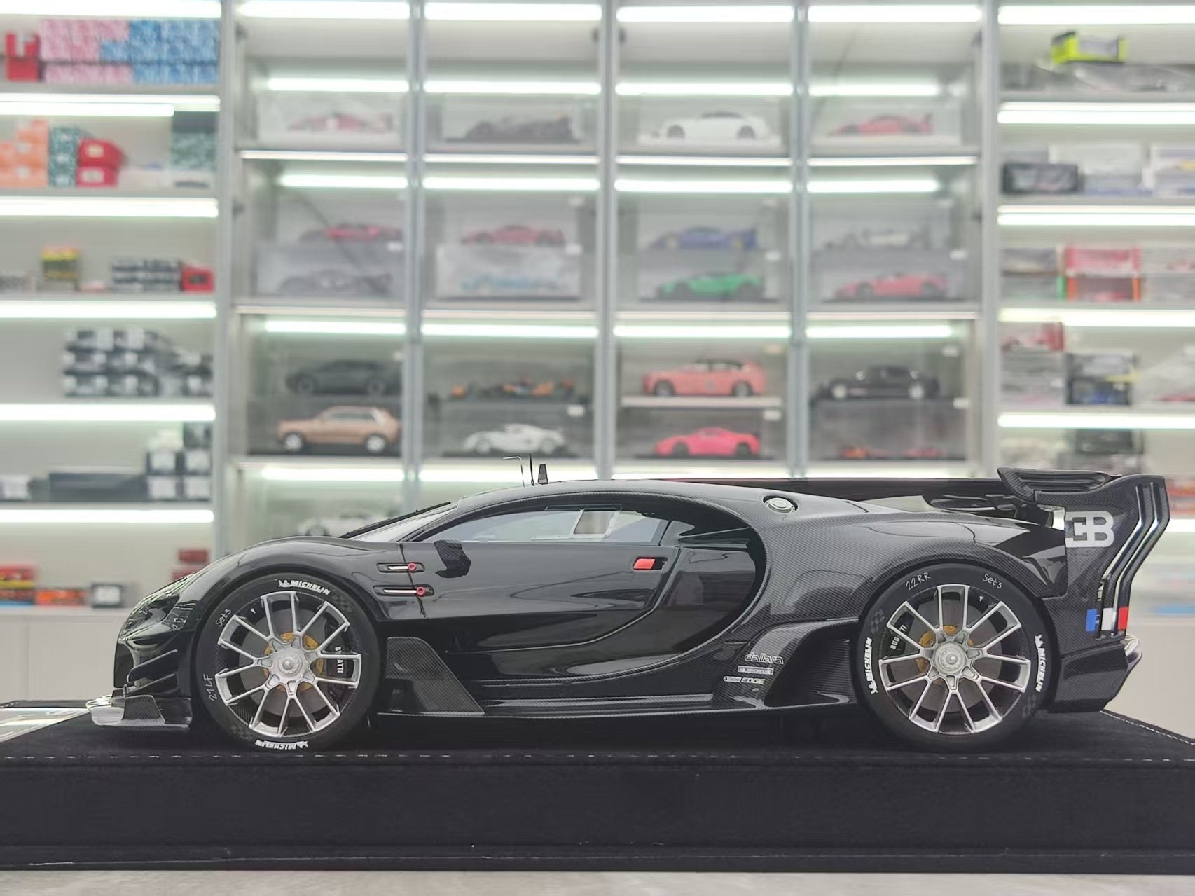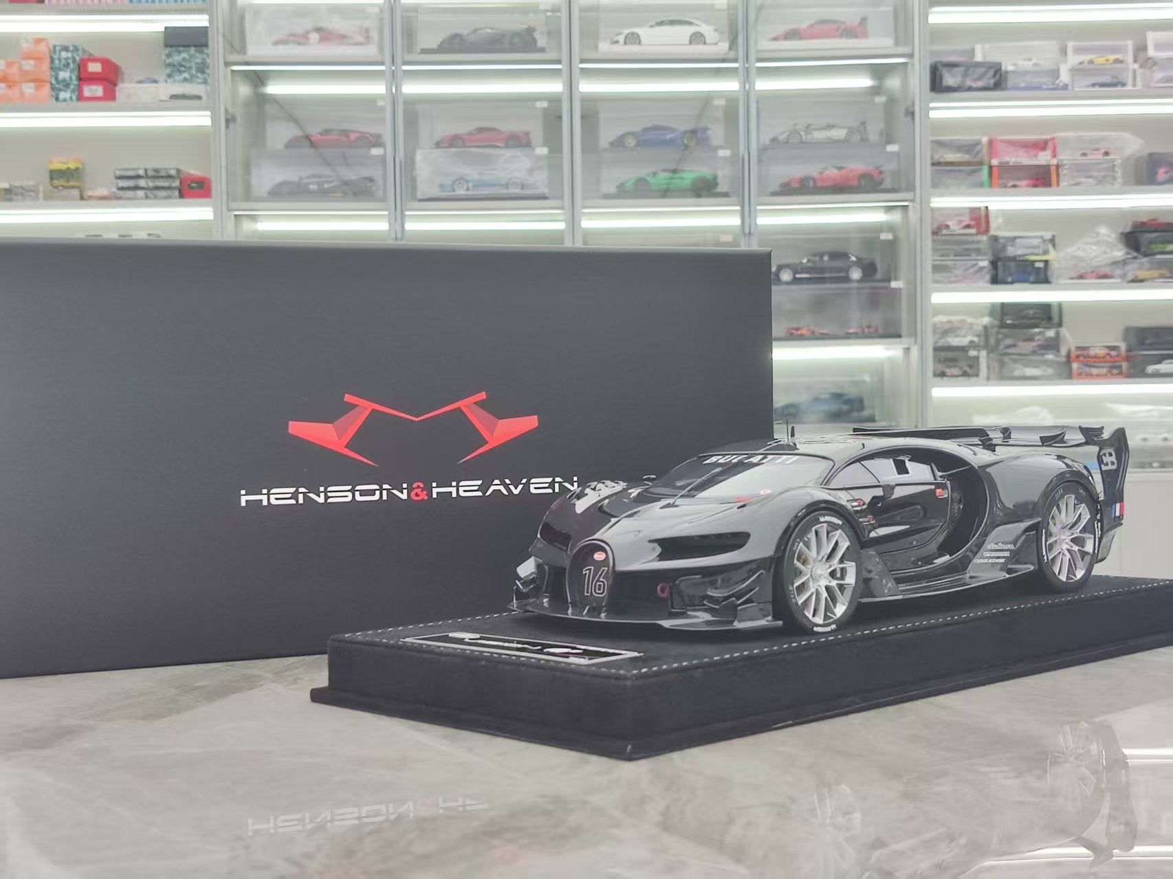 HH Model 1/18 Bugatti Vision GT Diamond Black/Black Carbon Fiber Model Car HH485