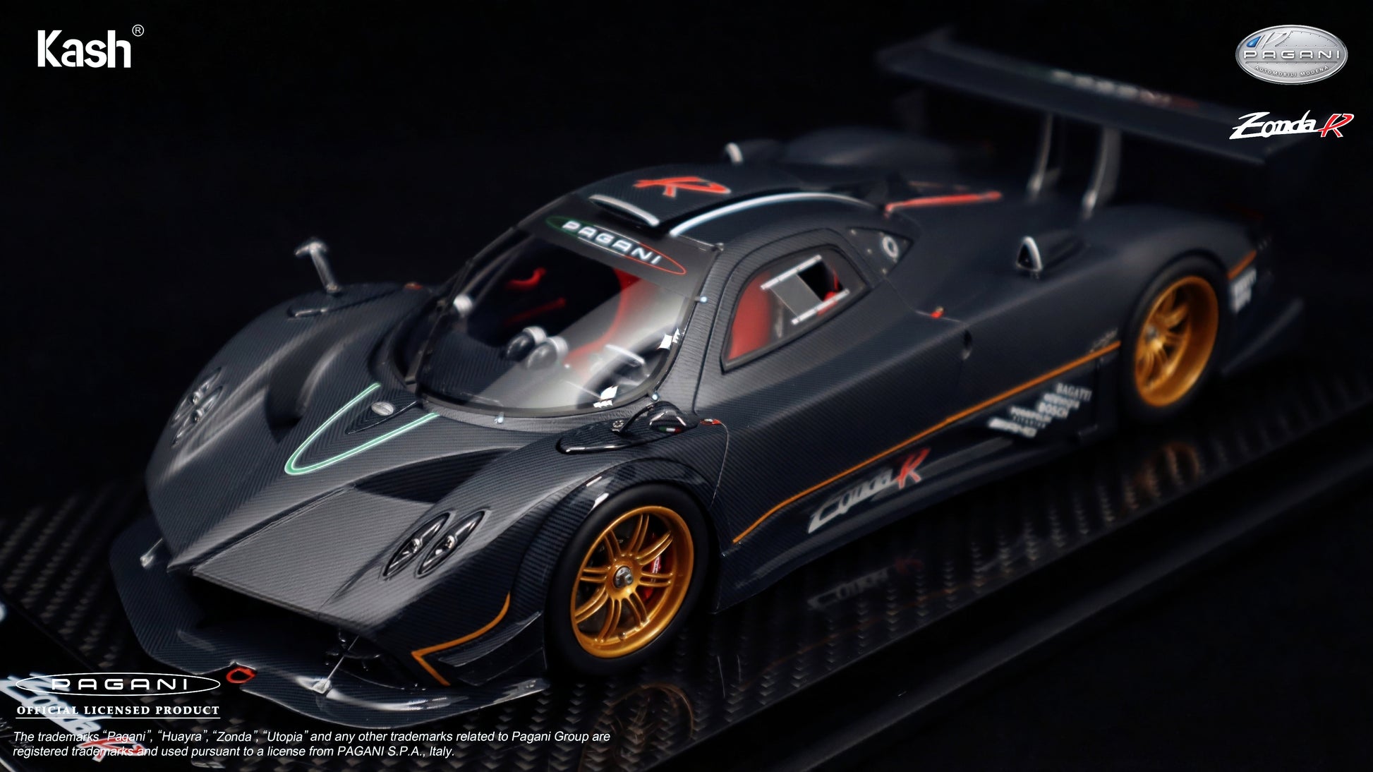 Kash is a registered trademark. This product has obtained global official authorization from Pagani. Please look for the "PAGANI OFFICIAL LICENSED PRODUCT" mark on the packaging box to guard against counterfeits; any infringement will be prosecuted.