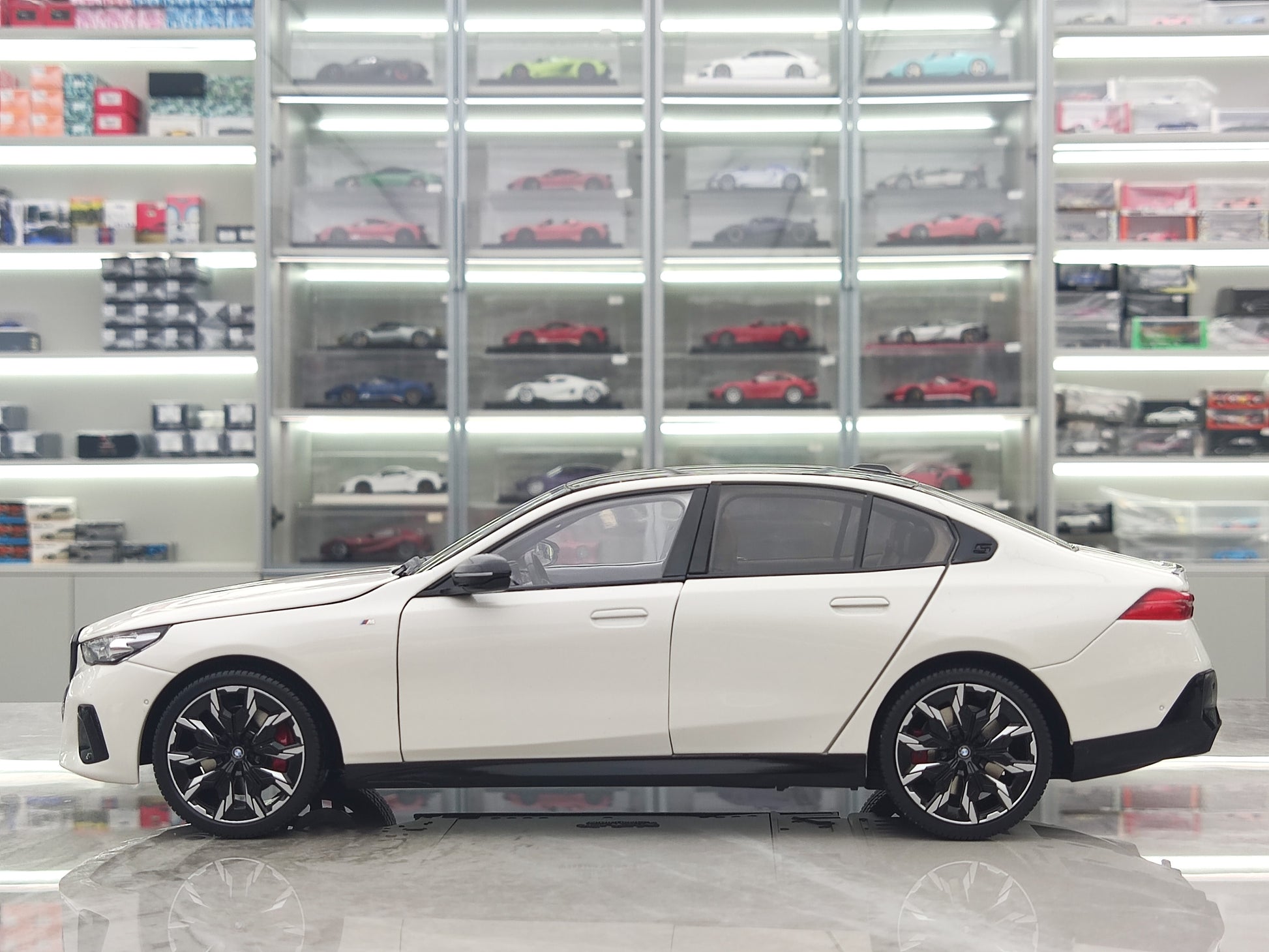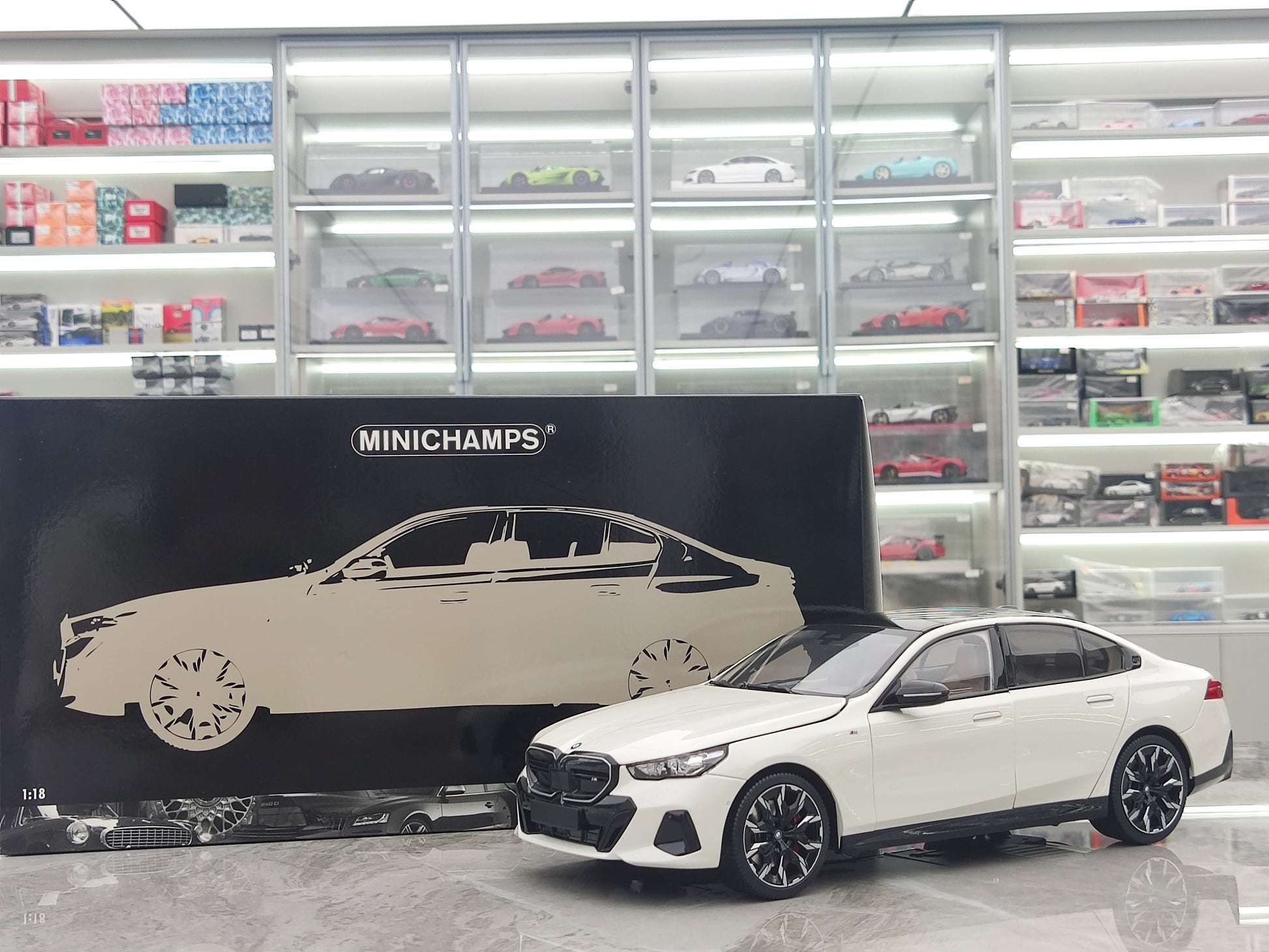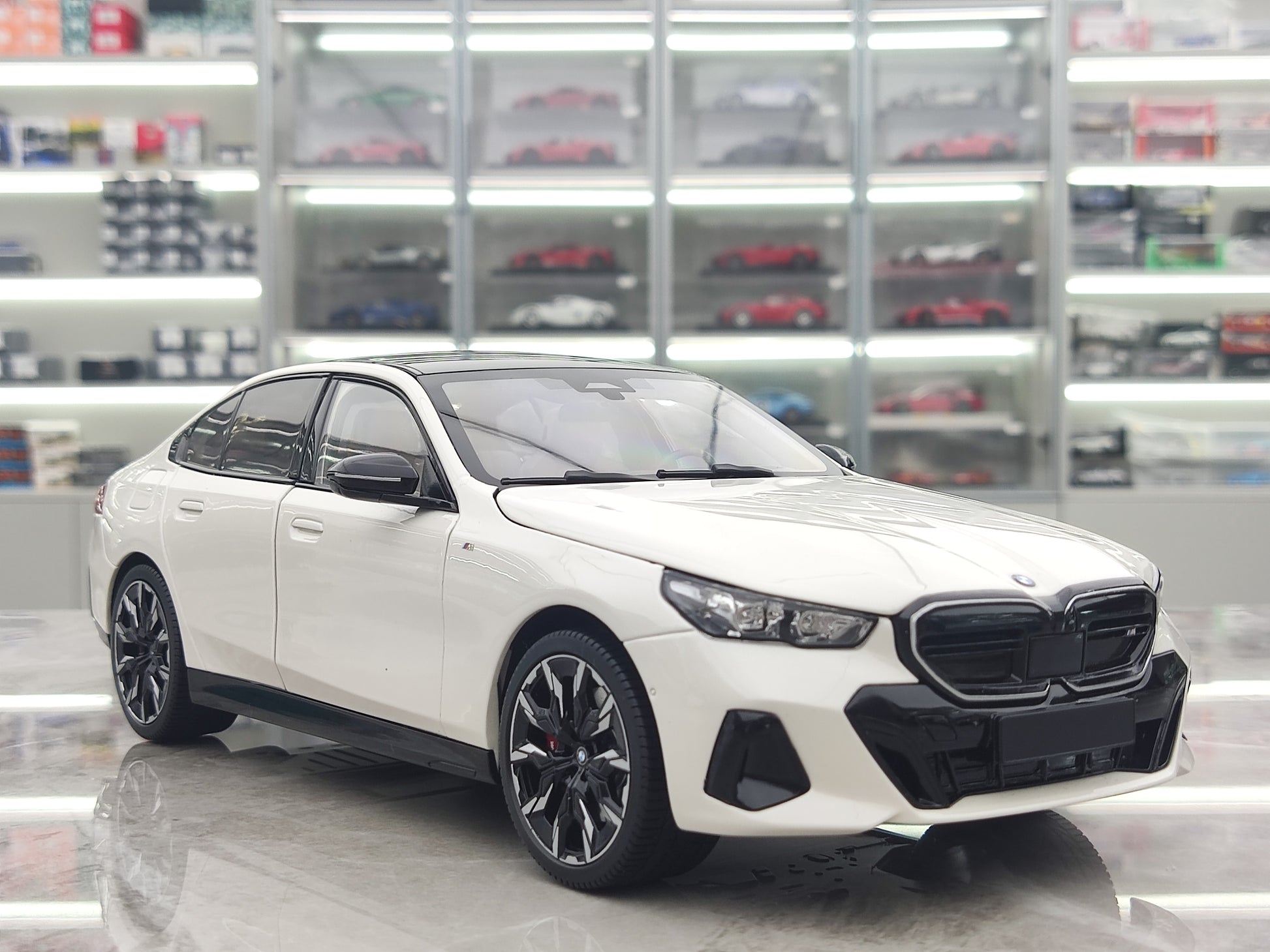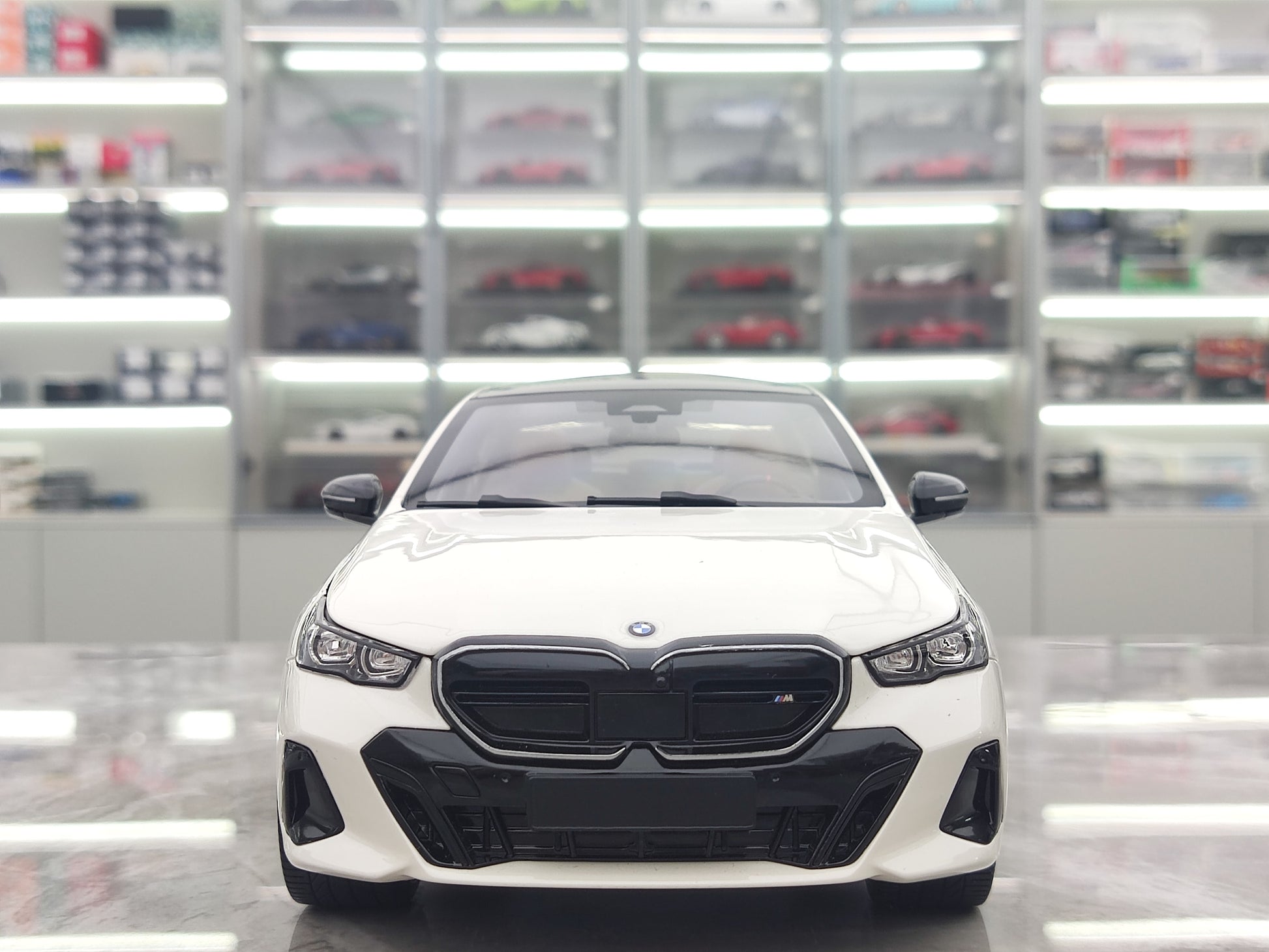 This 1/18 BMW i5 model from MINICHAMPS in metallic white is a perfect addition to any car collector's display. Made with high-quality materials, this new energy vehicle model accurately captures the sleek and modern design of the actual BMW i5. A must-have for any fan or industry expert.