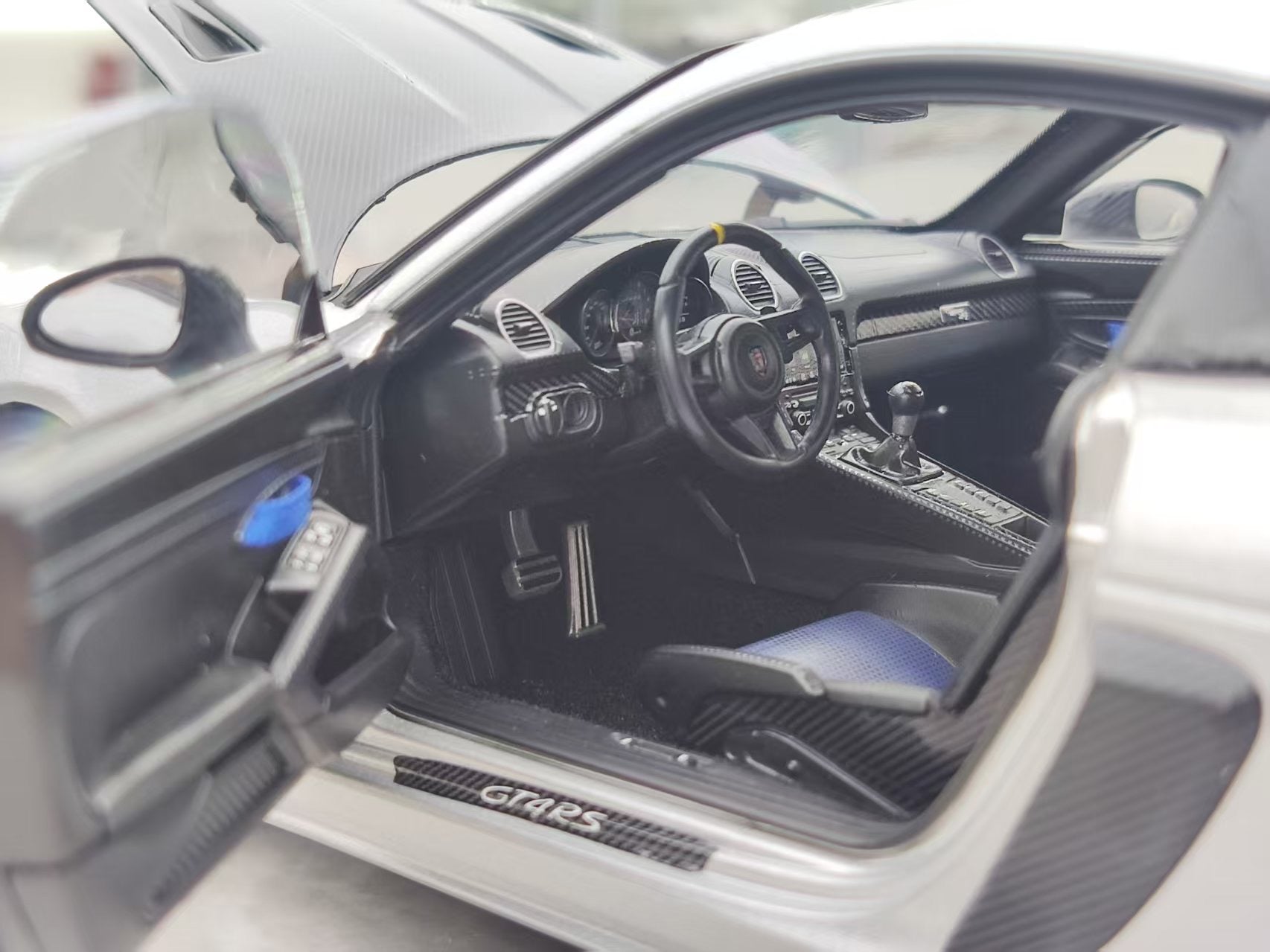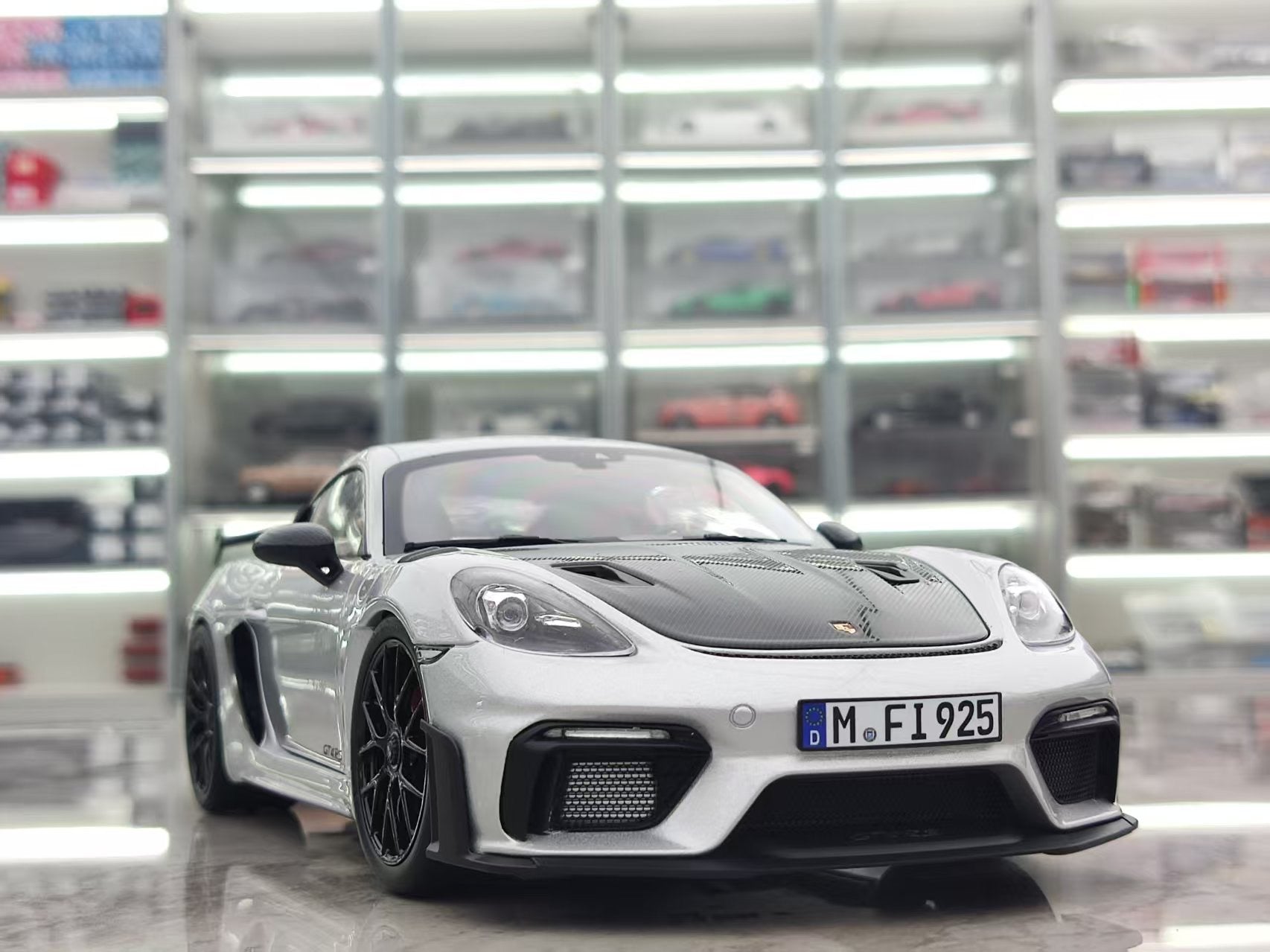 NOREV 1/18 Porsche Cayman GT4 RS Silver Carbon Cover Alloy Car Model 187256