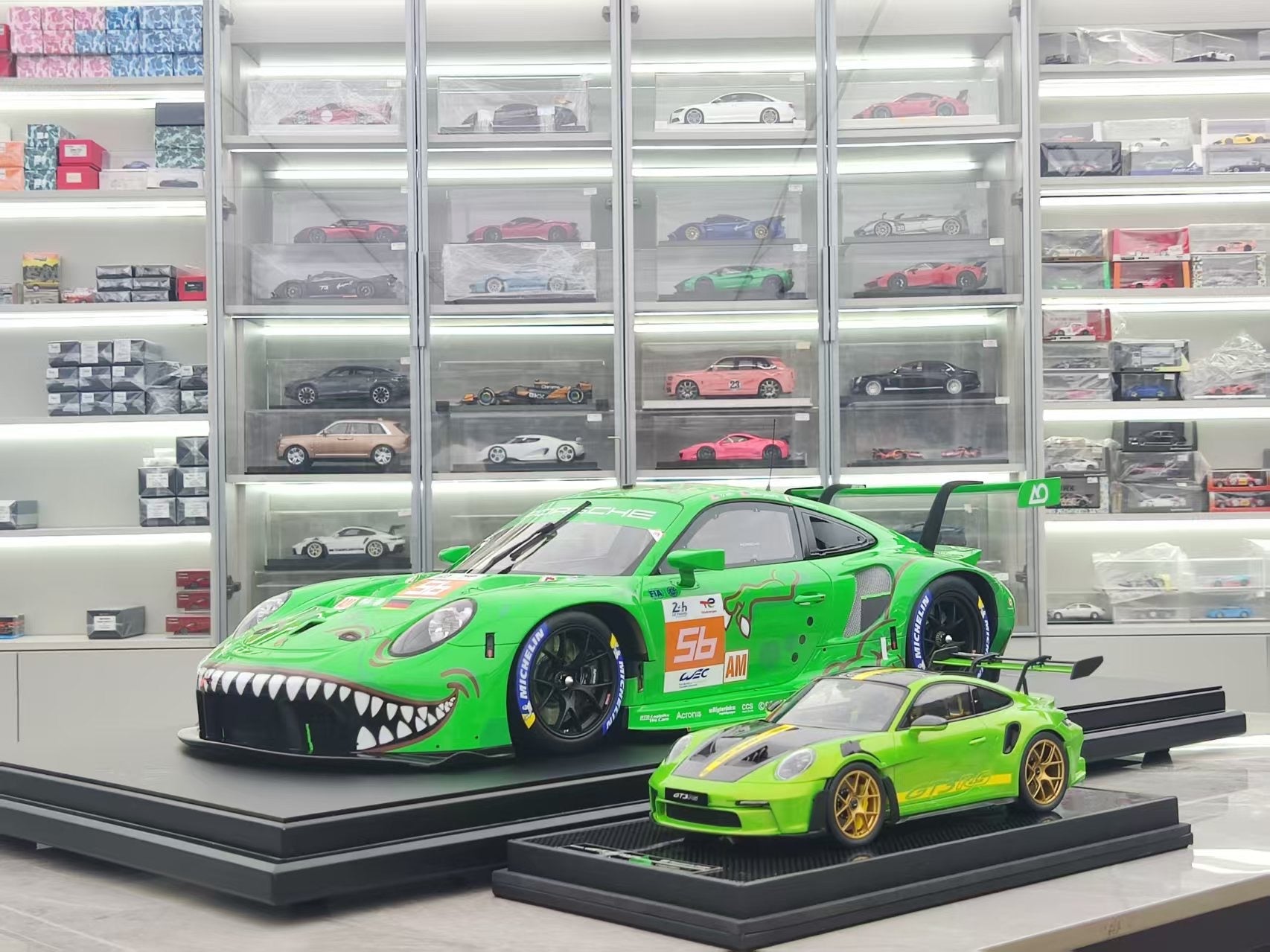 SPARK 1/8 Porsche 911 RSR 19 No.56 PROJECT 1-AO Le Mans 24H 2023 Green Dinosaur Livery 08G046