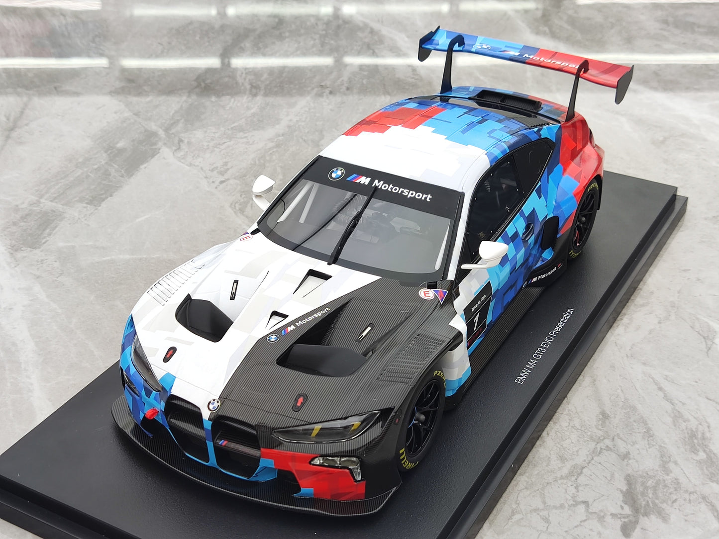 Introducing the Topspeed 1/18 BMW M4 GT3 EVO Presentation Blue-White Livery Resin Model TS0614. This model car is a perfect birthday gift for any car enthusiast. With its meticulously crafted details and realistic design, it's sure to impress. Made from high-quality resin, it's also a durable addition to any collection.