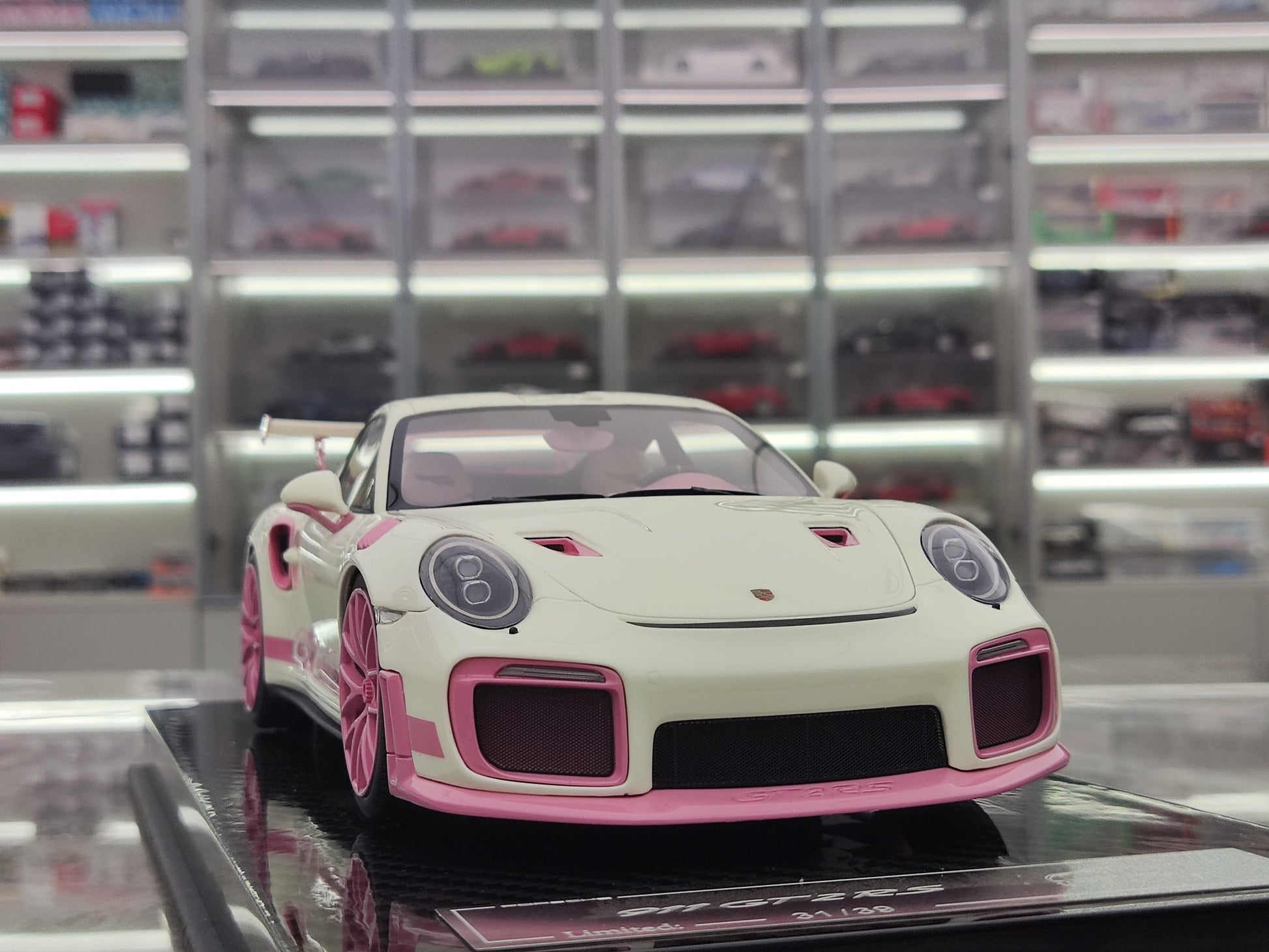 UU 1/18 Porsche 911 GT2 RS Fluorescent Pink Simulated Car Model JS-UU008